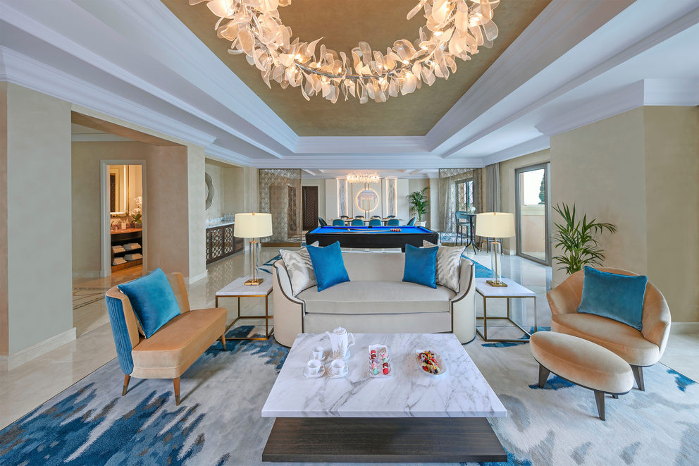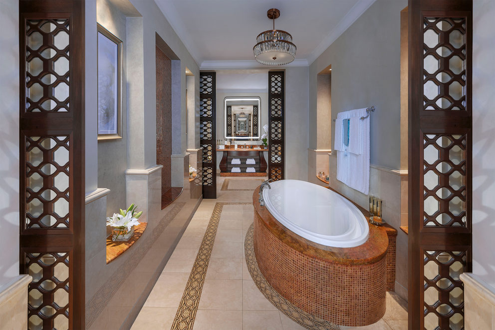 Atlantis, The Palm’s 220sqm Presidential Suite balances elegance and grandeur in a truly remarkable setting. With a stately lounge, lavish dining area, separate office space and a walk-in closet, the Presidential Suite is ideal for those seeking an extra level of comfort and luxury. Enjoy unparalleled views of the Atlantis beachfront and the Palm and melt away in your oversized jacuzzi tub.